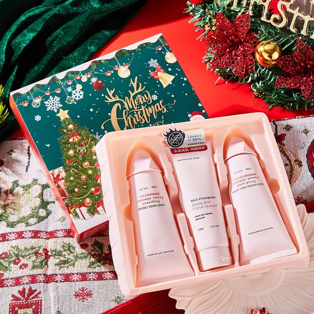 Walderdbeere Feuchtigkeitsspendende Weihnachtsgeschenkbox Handcreme Bodylotion Gesichtsreiniger Kombination Koreanische Hautpflege Sets Produkte