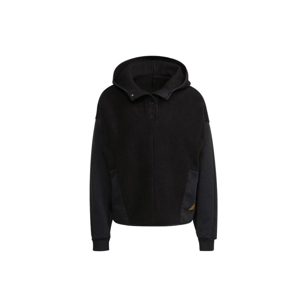 Adidas Einfarbiges Logo Fleece Dickes Kapuzensweatshirt Damen Sweatshirt Schwarz GT0147