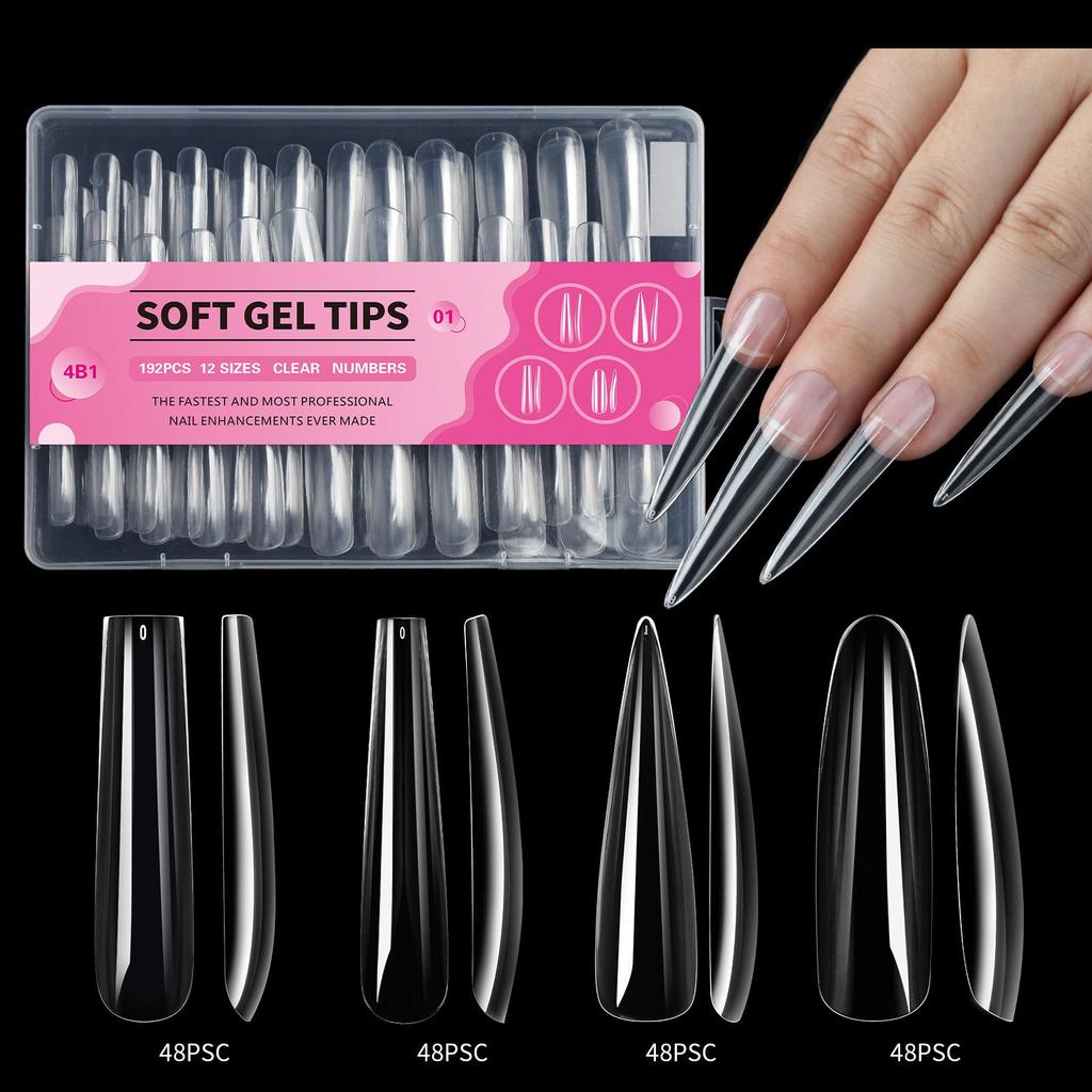 Superlanges und nahtloses 4-in-1-Wasserrohr-Nagelstück, Ballett-Nagelstück, transparenter Vollaufkleber, Denim, 192 Stück pro Box