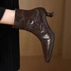 Spitze Zehenpartie Damen Stiefeletten Leder Elegant Designer Mittelhohe Absätze Schuhe Neue Marke Trend Winter Klassische Pumps Botas De Mujer