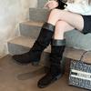 Spitz zulaufende Kniehohe Stiefel für Damen, Winter, neue Mode, Flock-Chelsea-Stiefel, runde Zehenpartie, Party-Westernschuhe für Damen, Zapatos