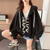 Herbst Damen Lose Langarm Buchstaben Gedruckt Kapuze Freizeitjacke
