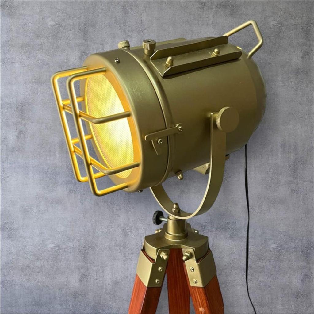 Elegant Brass Antique Tripod Searchlight Floor Lamp - Nautical Home Decor Retro Style Marine Spotlight Perfect for Corner Display