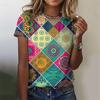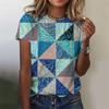 3D-gedrucktes lustiges kariertes T-Shirt für Damen, farbenfrohe Geometrie-Grafik-T-Shirts, Sommer Harajuku O-Ausschnitt Oberteile, kurzärmelige T-Shirts