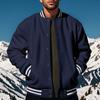 Herren Baseballjacke Herbst und Winter Fleece Amerikanische Einfarbig Locker Lässig Stehkragen Einreiher Fliegerjacke
