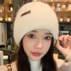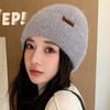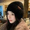 Herbst Winter Leder Strickmütze Großer Kopf Verdickte Warme Strickmütze Koreanische Ausgabe Ins Stil Einfarbig Studentenmütze