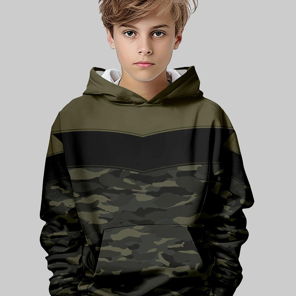 Lässiger Kapuzenpullover mit 3D-Druck für Jungen, langärmliges Outdoor-Shirt mit zufälligem Druck, atmungsaktives Polyestergewebe