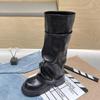 Mode Damen Plateau Hohe Stiefel Leder Kniehoch Flache Schuhe Frau 2025 Trend Wintermode Kleid Goth Retro Motorradstiefel Mujer