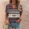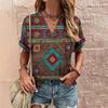 Ethnisches Damen-T-Shirt, Sommer, V-Ausschnitt, kurzärmelig, lockeres, lässiges Oberteil, neues kurzärmeliges Vintage-T-Shirt für Frauen, Kleidungshemd