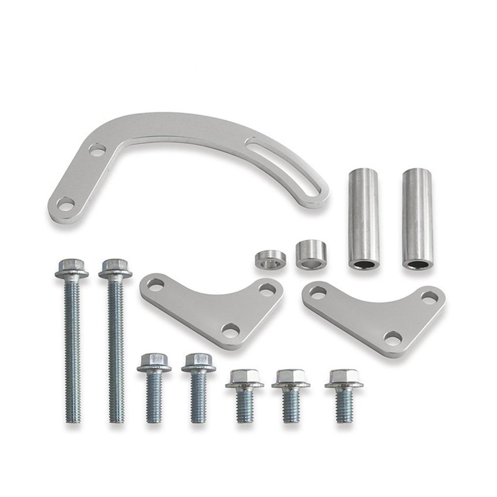 Verstellbare Aluminiumhalterung für SBC Servolenkpumpe mit geschlitztem Arm zur Aufrechterhaltung der Riemenspannung.