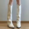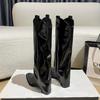 Leder Chunky Frauen Hohe Stiefel Spitzschuh Fad High Heels Schuhe 2025 Trend Winter Neue Kniehohe Pumps Motorrad Botas