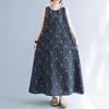 Sommer Baumwolle Leinen Künstlerisch Lockerer Druck Retro Floral Ärmelloses Westenkleid für Frauen