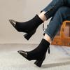 Fashion Black Fashion Boots Low Heel Zipper Nude Boots Dark Brown Spring and Autumn Women's Single 35-40 Aunt Short Boots Women's
