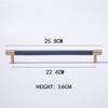 Nordischer Stil Schlichtes PU-Leder + Messing Tür Schublade Doppelloch Schrankgriff Küchenschranktür Griffe Möbelgriff