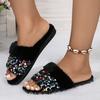 Mode Herbst Winter Damen Rutschfeste Hausschuhe Baumwolle Offene Zehen Outdoor Pantoletten 2024 Neu Damen Flache Indoor Schuhe Übergröße Plüsch Hausschuhe