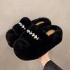 Mode 2024 Neues Perlendesign Flauschige Hausschuhe Damen Hausschuhe Indoor Weiche Plüsch Warme Hausschuhe Damen Mode Keilschuhe Größe 35-42