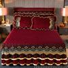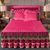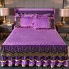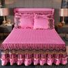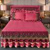 3pcs Solid Color Skin-friendly Sandwiched Diamond Grid Flower Quilted + Raised Lace Layer Bed Skirt Kit 1pc Bed Skirt + 2 Pillowcases
