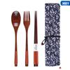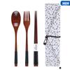 Holzgabellöffel Dreiteiliger Anzug Japanischer Korea-Stil Tragbares Reisegeschirr Schönes Geschirr Taschenverpackung