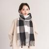 Karierter Kaschmirschal für Damen, warmer Schal mit Fransen, vielseitiger Swing- und Winterschal mit Vogelgittermuster für Herren