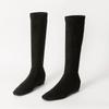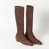 Mode Damen Wildleder Hohe Stiefel Flats Eckige Zehenschuhe Frau 2025 Trend Chelsea Boots Winter Goth Walking Neu Mujer Schnee Motorradstiefel