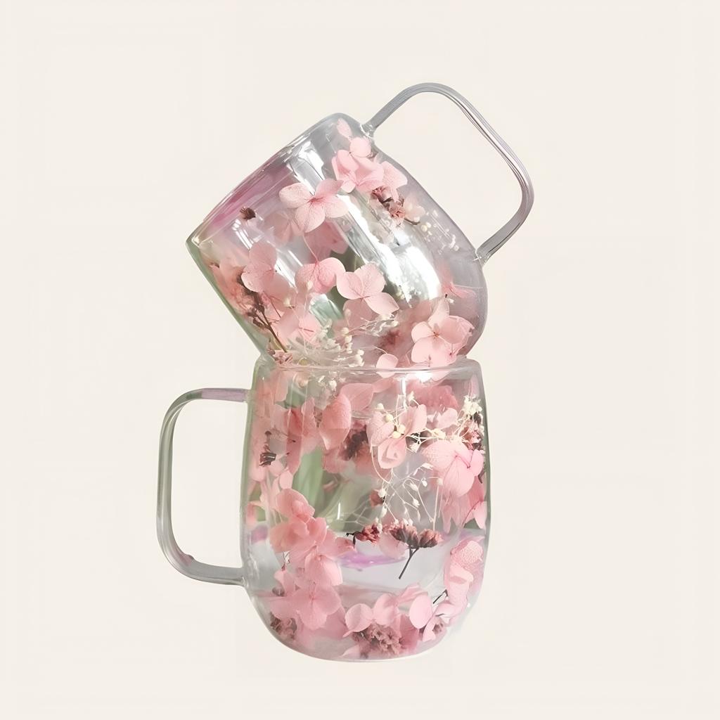 Kreatives neues Produkt, echte Blume, doppelschichtige Tasse, Kaffeetasse, Glas, Wassertasse, Bar, Café-Tasse, schöne Blumentasse