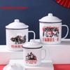 Retro Verdickt Nostalgischen Emaille Tasse Grün mit Abdeckung Tee Glas 1970er Jahre Chinesischen stil Anti-fall Becher Camping