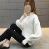 Einfarbiger Damenpullover, lockerer Rollkragenpullover, warm, einfarbig, elastischer Pullover, Strickwaren, halbhoher Kragen