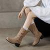 Größe 42 Mode Gürtelschnalle Vintage Mid-Calf Stiefel Damen Herbst Klobige Absätze Western Cowboy Stiefel Frau PU Leder Ritter Stiefeletten
