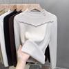 Einteiliger Samtpullover mit hohem Kragen Damen Samt-Basisschicht Winter Spitze Strickpullover Innenschicht