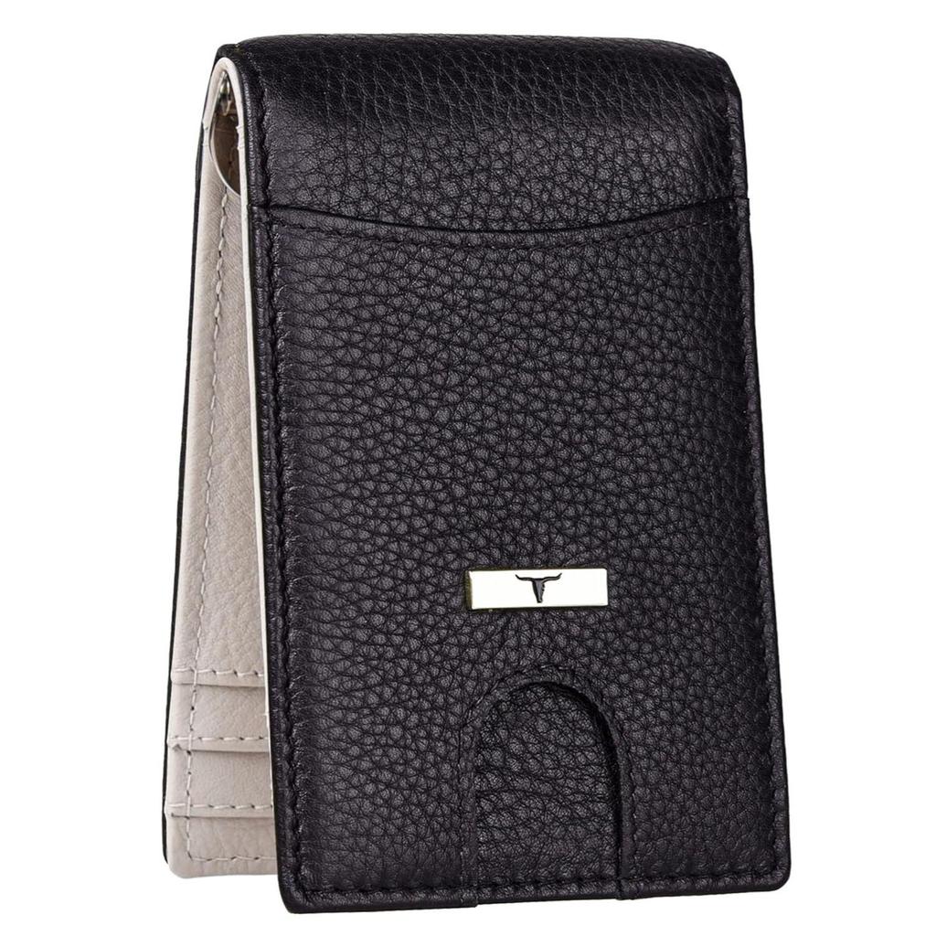 Eddy Schwarz/Sand Geldscheinklammer Lederbrieftasche für Herren