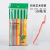 100Pcs Drinking Plastic Curved DIY Shaped Disposable Straws Colorful Artistic Long Flexible Party Supplies Kitchen Accessories
