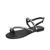Damenschuhe 2024 Sommer Neu Heiß Verkaufende Mode Zehentrenner Sandalen Damen Einfarbig Flach Schnalle Strass Sandalen Zapatos