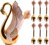 6-teiliges Kaffeelöffel-Set mit 1 Löffelhalter in Schwanenform, Löffel-Organizer aus Zinklegierung mit Schwanenbasis, elegantes Obst-/Dessert-Schwanenbesteck