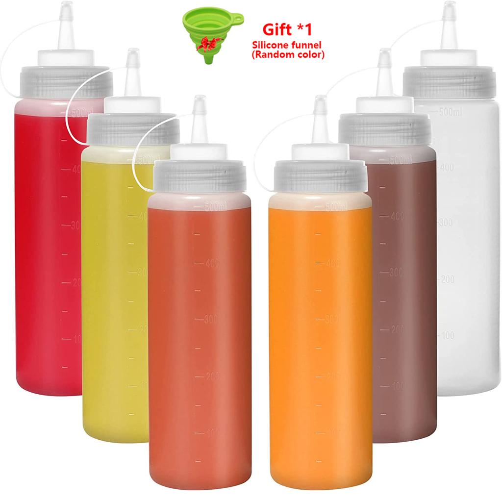 1/2/4/6 Stück Gewürz-Quetschflaschen mit Kappen, Kunststoff-Quetschspender mit Messangaben für Ketchup, BBQ, Saucen, Sirup