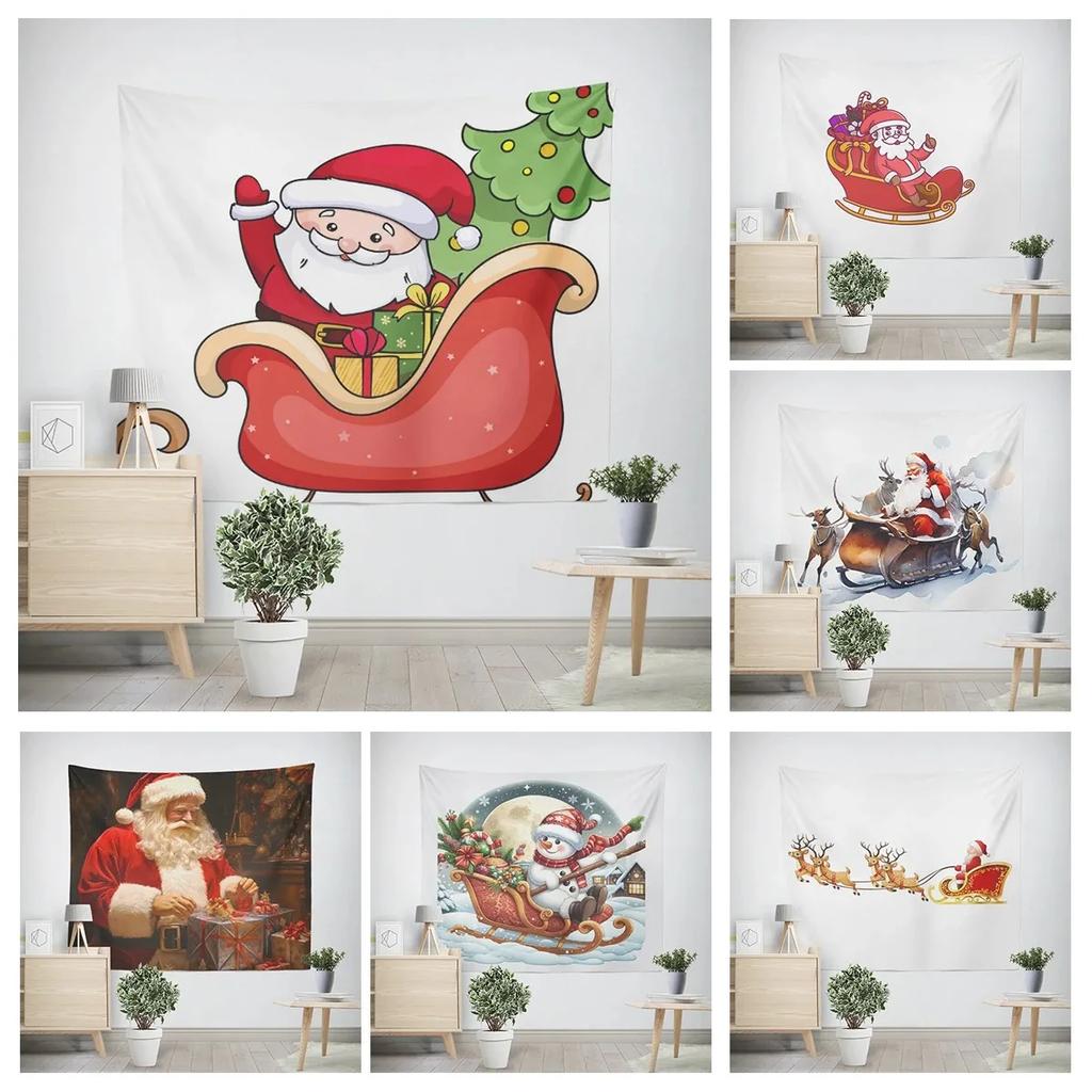 Neujahr Weihnachten Cartoon Weihnachtsmann Schlitten Muster Wandteppich Wohnzimmer Sofa Heimdekor Weihnachtsgeschenk