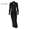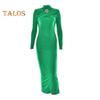 Abendkleid für Damen, ausgehöhlt, figurbetont, Metallschnalle, gerüscht, elastisch, reine Farbe, Midikleid, langärmelig, Abschlussball-/Partykleid