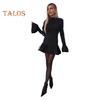 Minikleid für Damen, plissierter Rüschensaum, schmale Passform, Hornärmel, einfarbig, kurzes Kleid, elastischer Rollkragen, Club-Partykleid für Herbst und Frühling