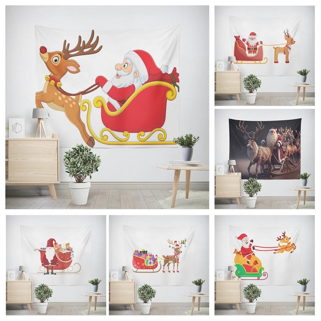 Weihnachten Neujahr Rentierschlitten Muster Wandteppich Wohnzimmer Sofa Auto Innenraum Dekowandteppich