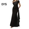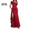 Abendkleid für Damen, schräger Halsausschnitt, schulterfrei, ärmellos, plissiert, Schnürung, Schärpendekor, unregelmäßiges Design, schmale Passform, Abschlussball, Party, Maxikleid, Sommerkleid