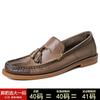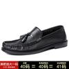 Atmungsaktive Slipper Herren Echtes Leder Britischer Retro Ein-Pedal Beanie Schuhe Sommer Lässige Lederschuhe Fransen Rindsleder Weiche Sohle