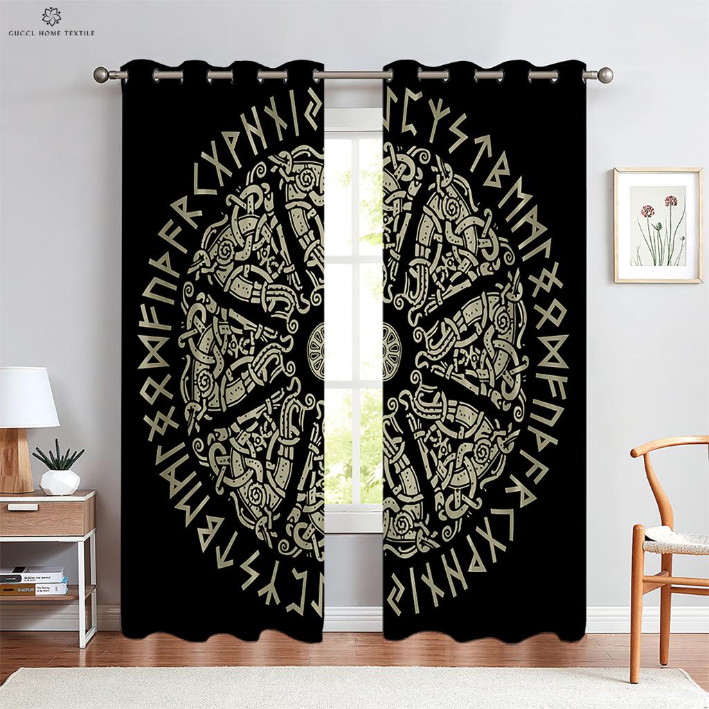 Geometrische Runen Schild Sternbild Bedruckte Vorhänge, Schwarze Vorhänge, Wohnzimmer, Außenbereich, Schlafzimmer, Küche, Fenster, 2 Stück