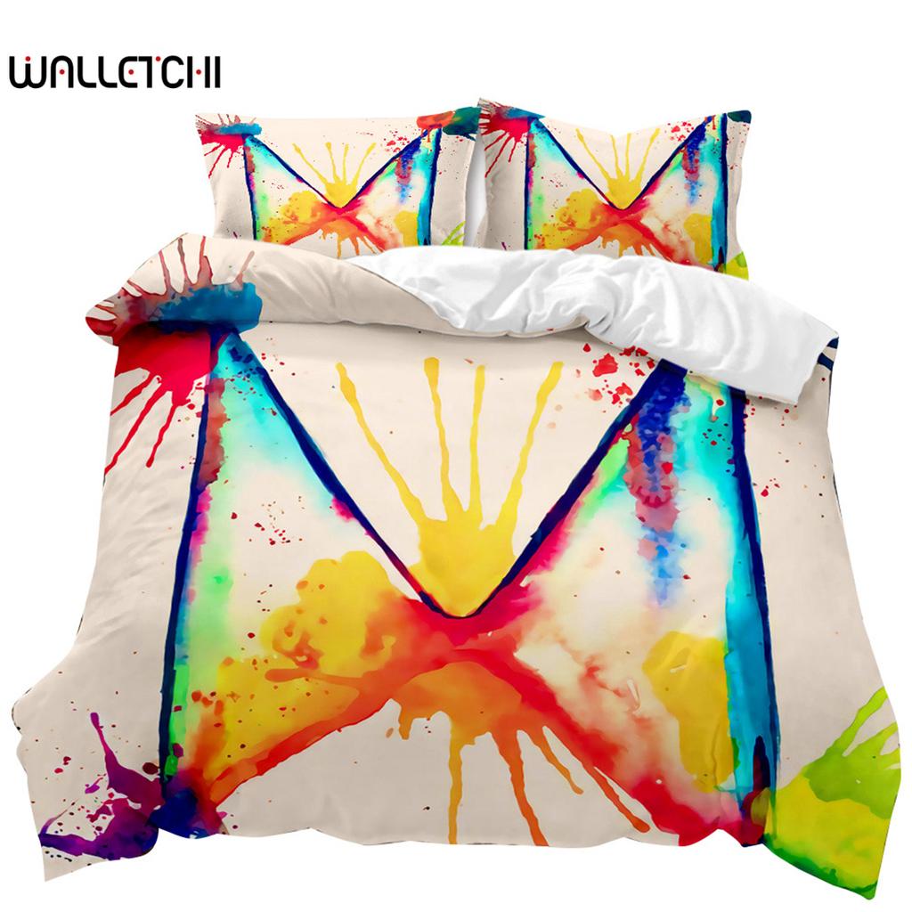 Aquarell Bettbezug Set Mehrfarbig Graffiti Spritzer Polyester Bettwäsche Set Kinder Jugendliche Doppel Queen King Size Qulitbezug