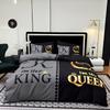 Bettbezug-Set mit Kronen-Schriftzug, Schwarz/Grau (1 Bettbezug + 2 Kissenbezüge) Hochauflösender Druck für die Dekoration Ihres Zuhauses