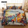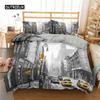 Paris Bettbezug-Set, Mikrofaser, Pariser Turm, Ölgemälde, Bettwäsche-Set, Auto, Stadtlandschaftsmuster, Bettbezug, Queen-Size-Größe