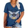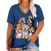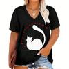 Damen T-Shirts Katzen Print Lässig V-Ausschnitt Kurzarm Lockeres Oberteil Weiblich Cartoon Tier Kleidung Mode Mädchen Oversized T-Shirts