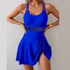 Damen Badeanzug mit Netzstoff, einfarbig, Badekleid, Übergröße