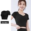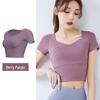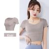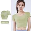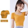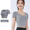 Juyitang Splicing Yoga-Kurzarm-Top mit Brustpolster – Hautfarbenes Slim Fit Fitness-Shirt