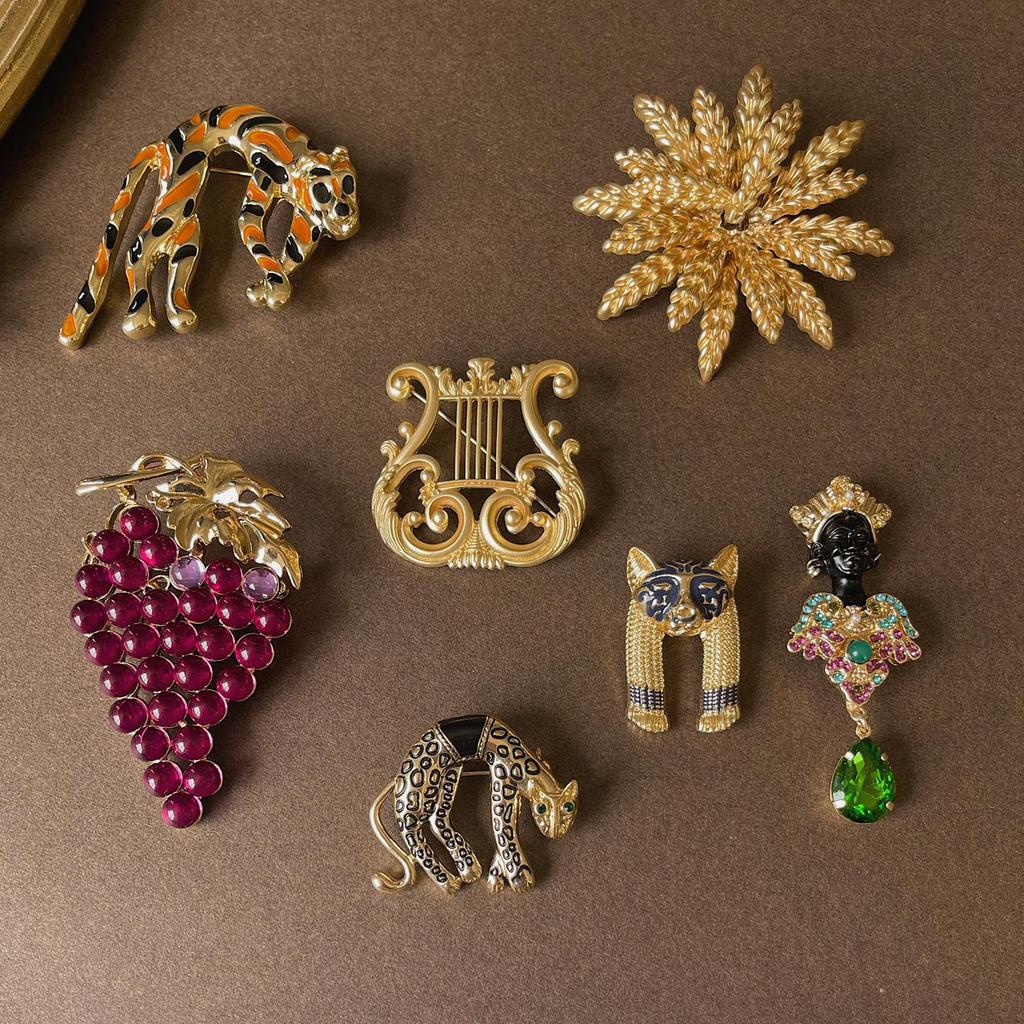 Vintage Barock Palast Stil Männer Und Frauen Fuchs Katze Emaille Musikinstrument Anzug Äußere Brosche
