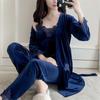 Schlafanzug Damen Gold Samt Herbst/Winter Anzug Sling Nachthemd Sexy Nachthemd Vierteiliger Anzug mit Brustpolster Home Service