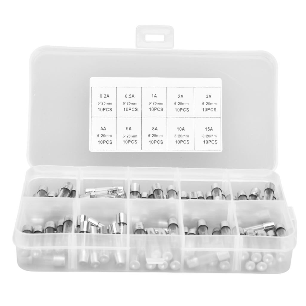 100 Stück Sicherung Schnellschmelzend Glas 0,2A 0,5A 1A 2A 3A 5A 8A 10A 15A 20A Set Kit zum Schutz